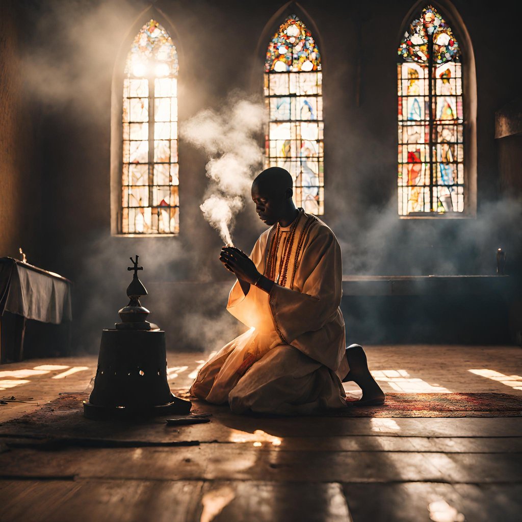 Incense and candles hold a profound significance in traditional African religious practices, including those that have been integrated into Christianity. They play a vital role in creating a sacred and spiritually immersive atmosphere during religious ceremonies and rituals. The fragrance of incense is believed to purify the environment, ward off negative energies, and serve as a conduit for prayers to reach the divine. It is often seen as a symbol of the presence of the spiritual realm. Candles, on the other hand, represent the illumination of the path to spiritual enlightenment and are used to invoke the light of the divine. The flickering flames symbolize hope, guidance, and the eternal presence of the divine in one's life. Together, incense and candles create a sensory experience that deepens the connection between the worshiper and the spiritual world, making them integral elements in the practice of traditional African religious beliefs within the context of churches and cathedrals.
